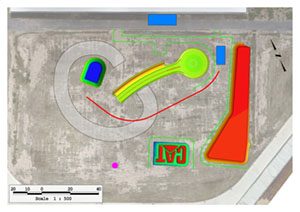 First SITECH flew a senseFly eBee over the proposed site, and from here were able to create a 3 dimensional plan showing all roads, buildings and services to an accuracy of 50mm. The SITECH Data services team took this data and designed the roads, drain and spoil areas, as well as planning the positioning of the stand where all the customers watched the demonstration from.